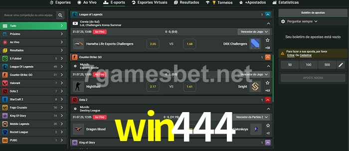 O win444 oferece uma grande seleção de opções de apostas em e-sports com probabilidades competitivas